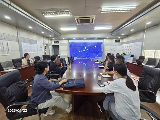 (图为审计组现场查看智能交通指挥调度系统使用绩效情况)
