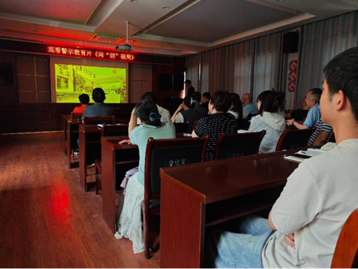 (图为县审计局组织审计干部观看警示教育片《问“剑”破局》)