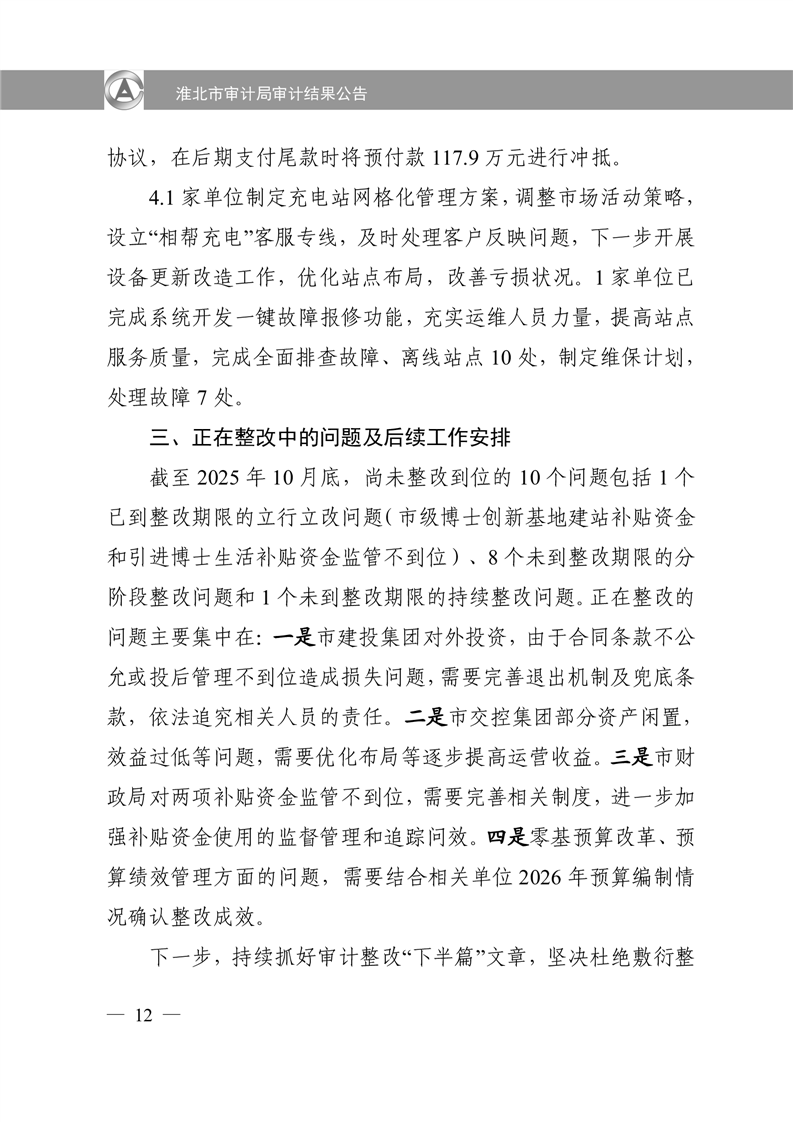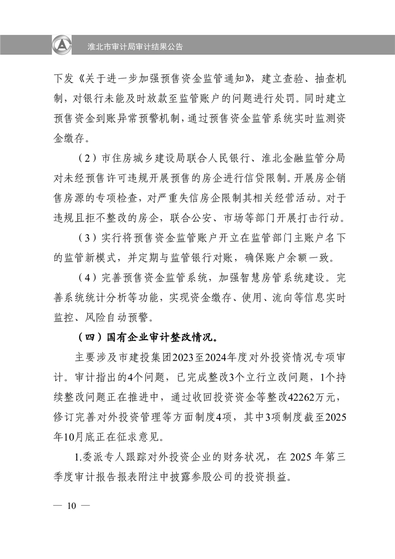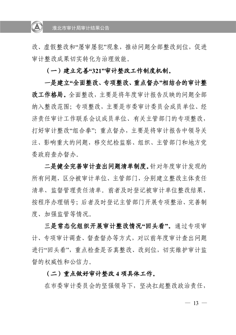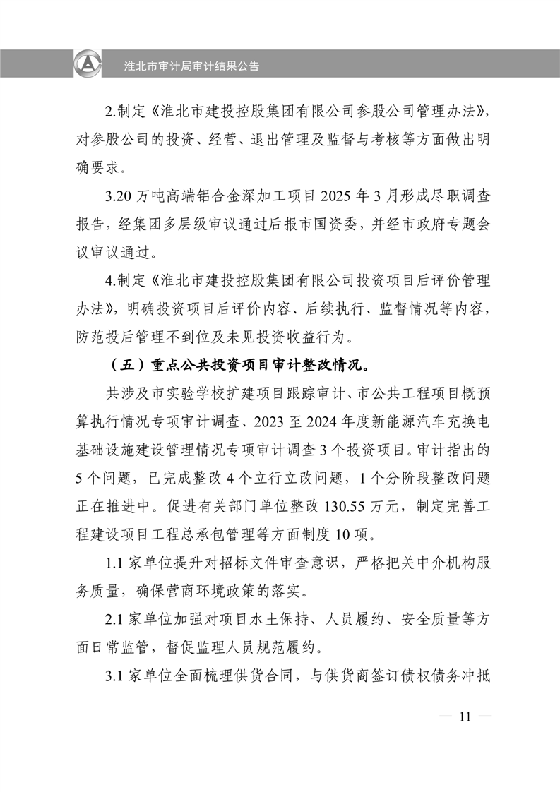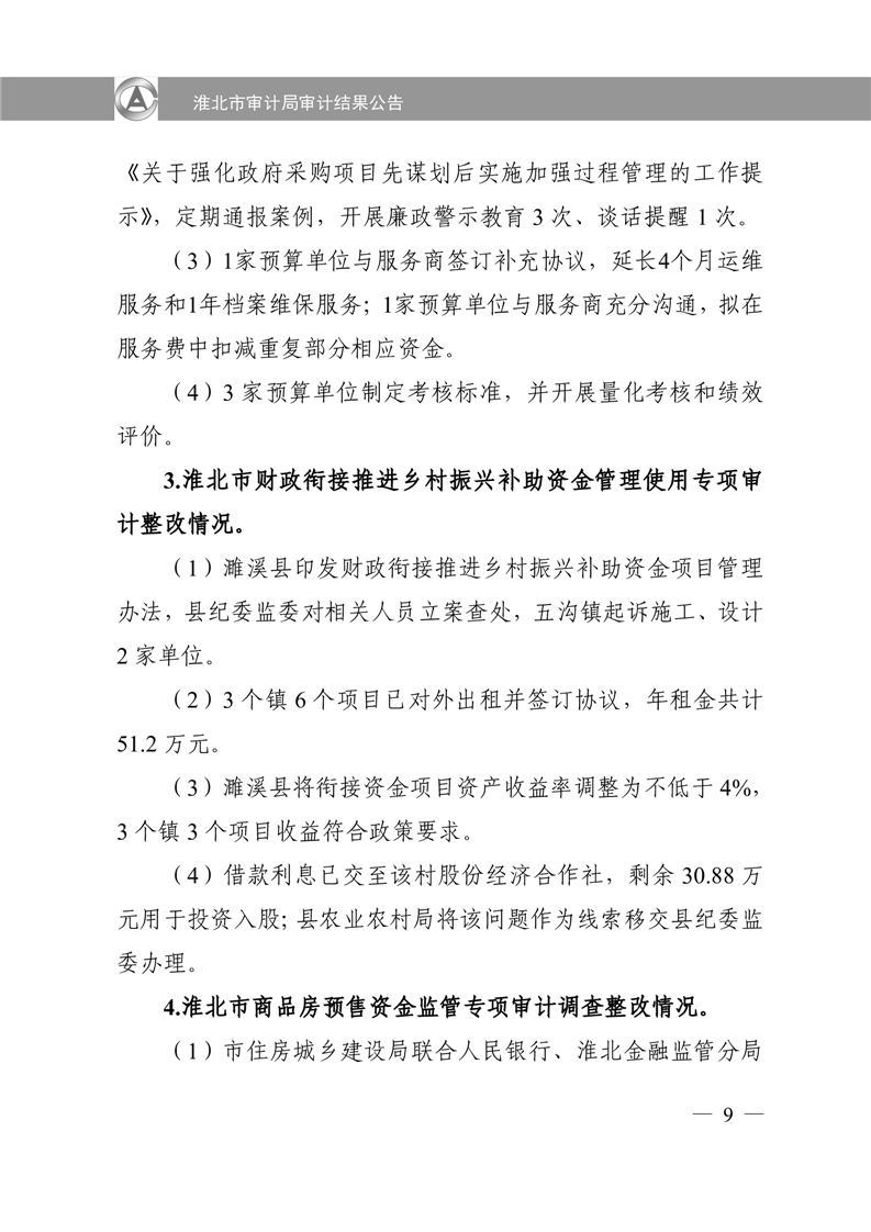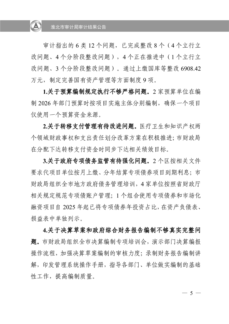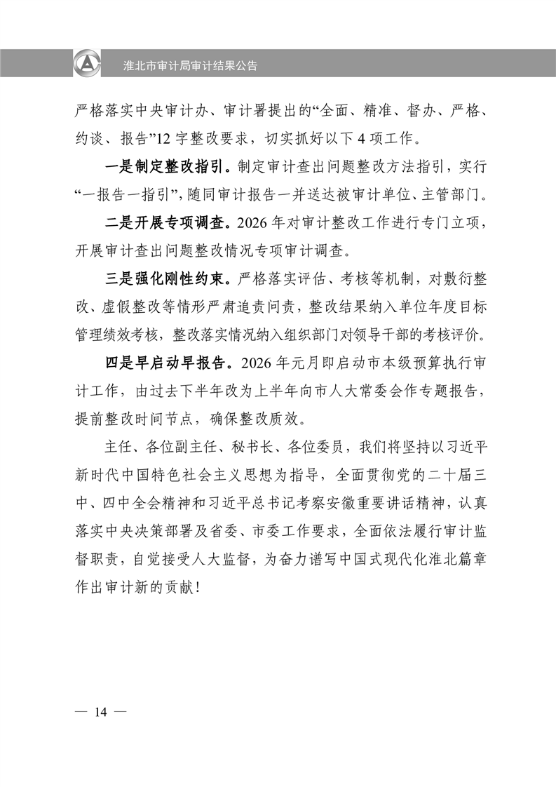 淮北市审计局审计结果公告2025年第2号:淮北市2024年度本级预算执行和其他财政收支审计查出问题整改情况的报告